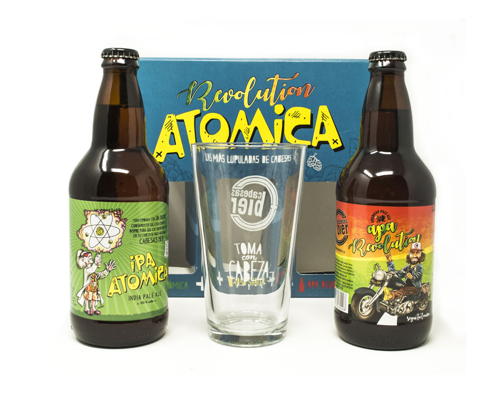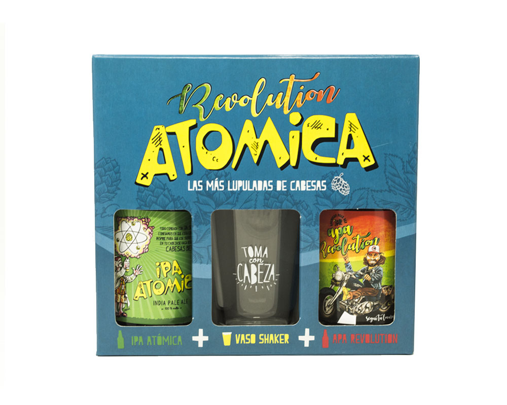 Contenido del pack: 1 Apa Revolution, 500ml. 1 Ipa Atómica, 500ml. 1 Vaso Shaker, 500ml.