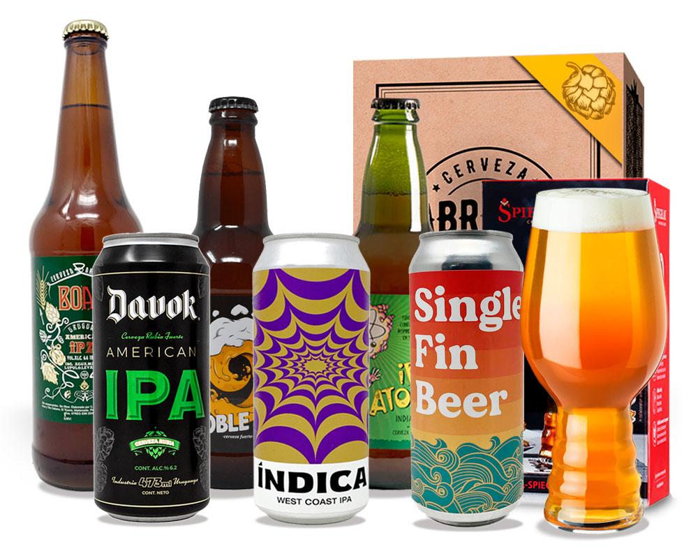 Contenido del Pack: 1 Índica West Coast IPA, 473ml. 1 Boar American IPA, 660ml. 1 Davok American IPA, 473ml. 1 Cabesas Bier IPA Atómica, 500ml. 1 Cabesas Doble IPA, 500ml. 1 Single Fin Bikini IPA, 473ml. 1 Copa IPA Spiegelau, 540ml.