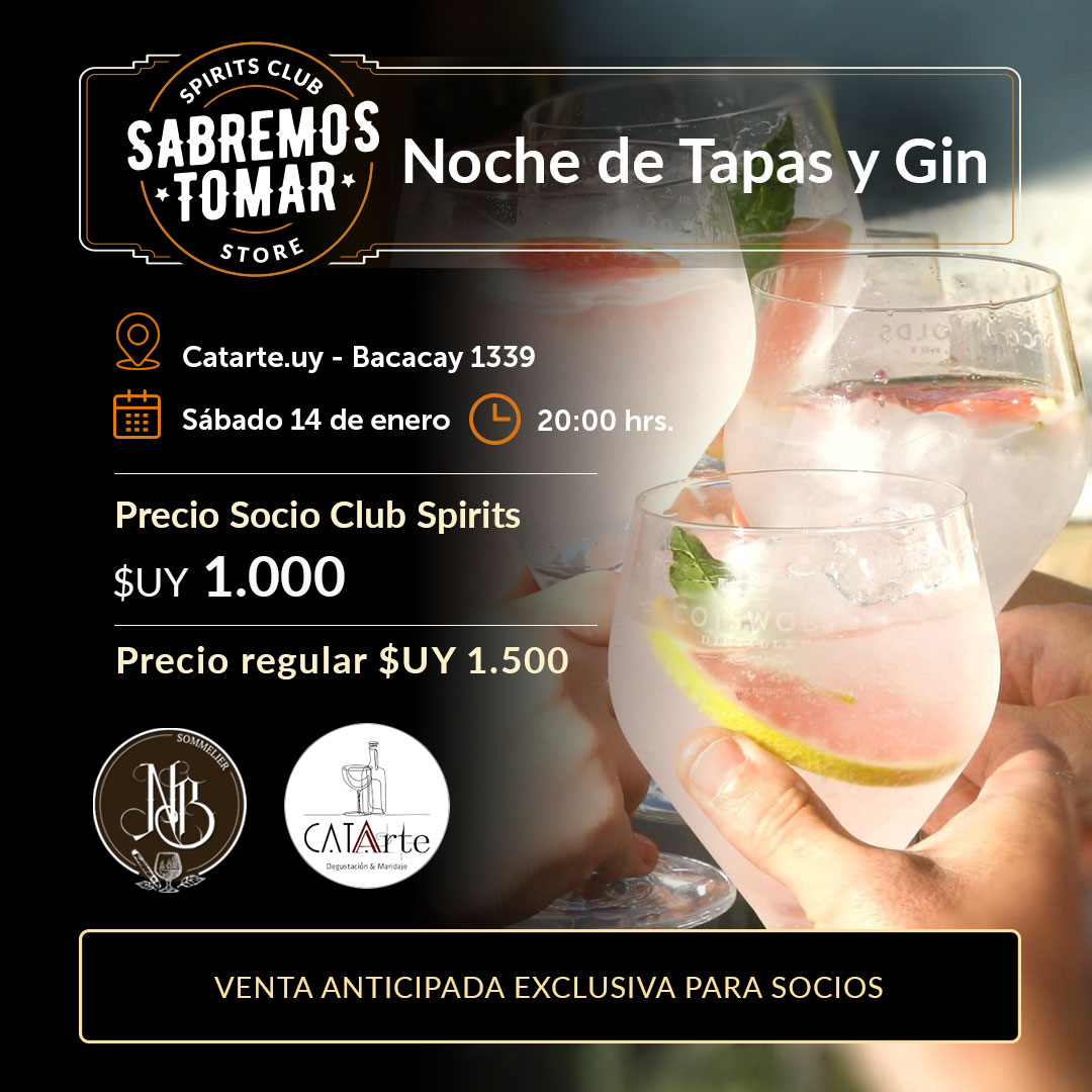 Sabremos Tomar Spirits y Catarte.uy te proponemos una noche de tapas y gin.