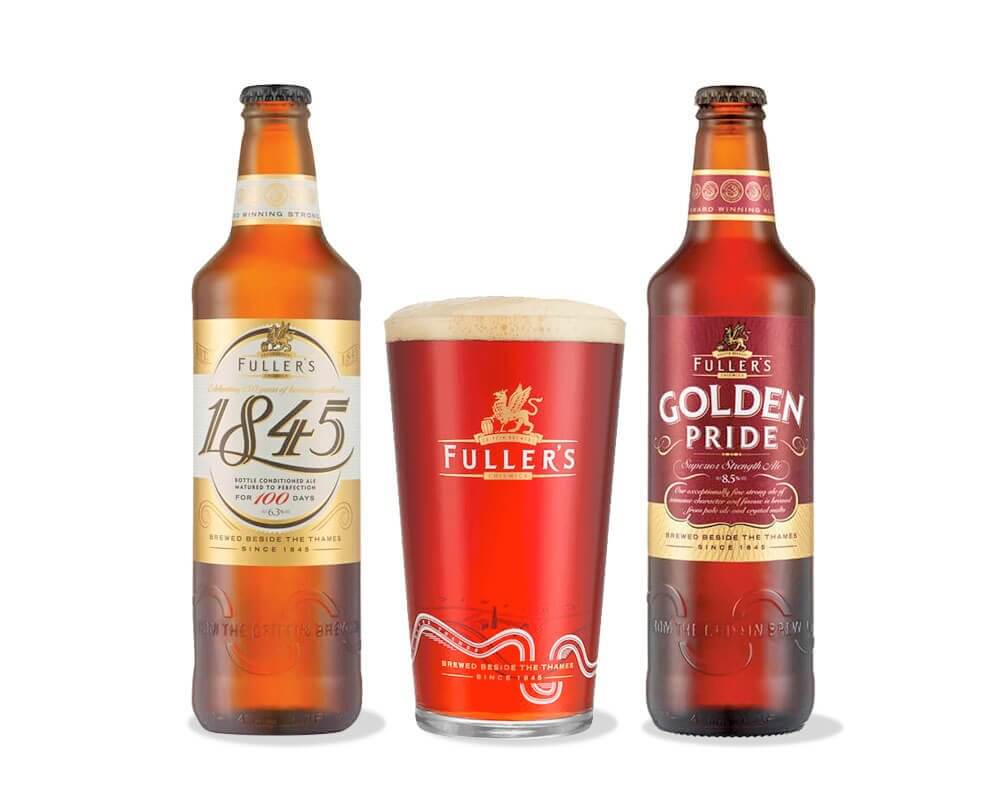 Contenido del pack: 1 Fuller´s Golden Pride, 500ml. 1 Fuller´s 1845, 500ml. 1 Vaso Pinta Fuller´s, 568ml