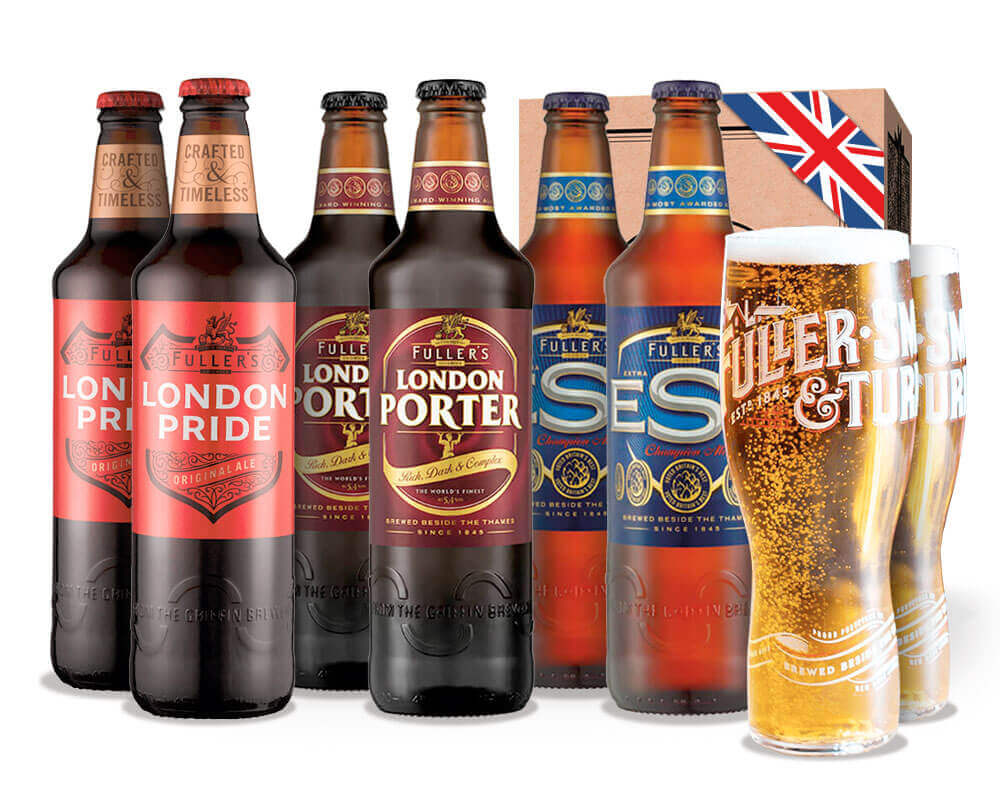 Contenido del pack: 2 Fuller´s ESB, 500ml. 2 Fuller´s London Pride, 500ml. 2 Fuller´s London Porter, 500ml. 2 Vaso Craft Fuller´s, 568ml.